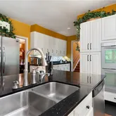- Kitchen Features: Cabinets White, Eat-in Kitchen, Kitchen Island, Pantry, Solid Surface Counters, View to Family Room