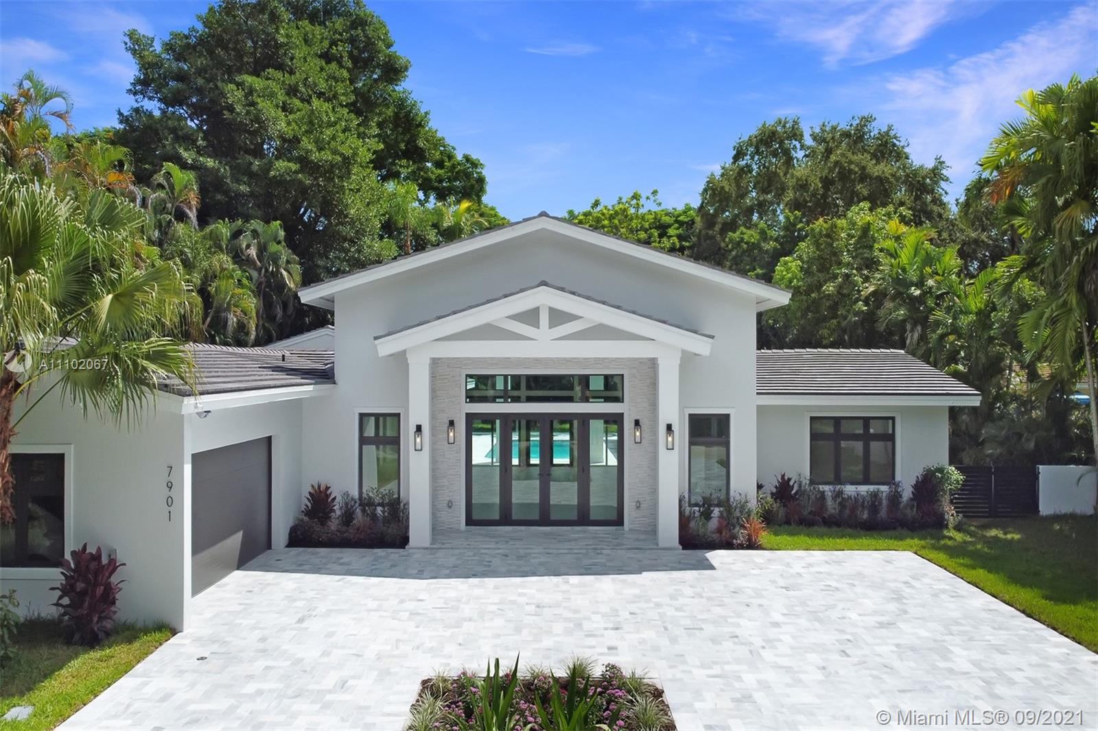 Spectacular 1-story estate located in Coral Gables' Platinum Triangle. Offers soaring ceilings, 6 beds, 7½ baths, and is nestled on a 20,000 sf lot surrounded by lush tropical gardens and mature trees. This 5,267 adj. sf (6,290 total sf) residence was fully gutted and rebuilt in 2021. Everything is new: roof, floors, walls, impact windows, plumbing, electrical, HVAC, septic tanks, kitchen, laundry room, baths, and driveway. Featuring a top-of-the-line kitchen with huge island, Sub Zero and Wolf appliances,...Spectacular 1-story estate located in Coral Gables' Platinum Triangle. Offers soaring ceilings, 6 beds, 7½ baths, and is nestled on a 20,000 sf lot surrounded by lush tropical gardens and mature trees. This 5,267 adj. sf (6,290 total sf) residence was fully gutted and rebuilt in 2021. Everything is new: roof, floors, walls, impact windows, plumbing, electrical, HVAC, septic tanks, kitchen, laundry room, baths, and driveway. Featuring a top-of-the-line kitchen with huge island, Sub Zero and Wolf appliances, wet bar, breakfast area, and walk-in pantry. The luxurious main suite has a sitting area, his and hers walk-in closets, a spa like bath with double showers and a floating tub. The heated resort style pool and spa, summer kitchen, and shaded outdoor terraces are perfect for entertaining.