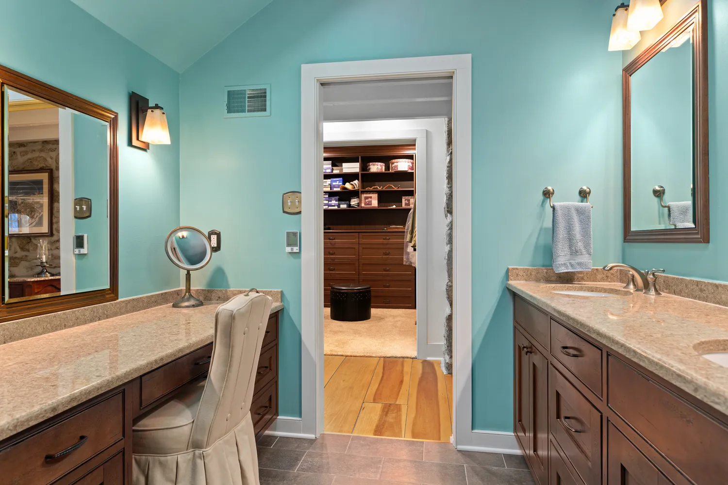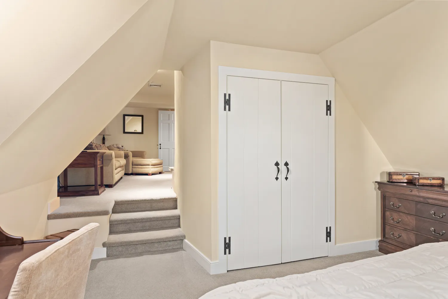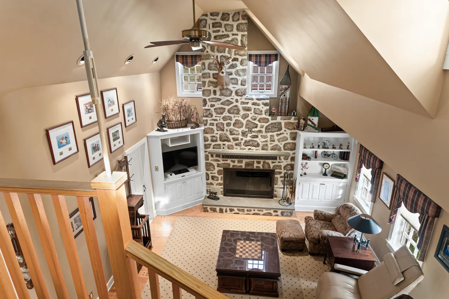 To your left is a stairway to the second level. To your right is the spacious living room/dining room with two fireplaces, one on each side of the room. Whether hosting large gatherings or cozy quiet evenings by the fire on a snowy evening, there could not be a more ideal room for entertaining! Just off the living room is the luxurious first floor primary suite with a walk-in closet with custom built-ins. Its separate sitting room with a fireplace will become your private retreat for relaxation and comfort. An ensuite bathroom features radiant heat flooring, a glass-enclosed shower, a privacy room, dual sink vanity and a separate vanity table. Head to the chef’s kitchen with a massive center island with informal seating, perfect for meal prep and effortless entertaining. This chef’s kitchen boasts abundant cabinetry, a Sub-Zero refrigerator, Dacor double ovens and gas range, granite counter surfaces and a walk-in pantry. The kitchen overlooks the sun-filled informal dining area with a built-in serving buffet with storage cabinets, a beverage refrigerator and a gas stove. You will enjoy the breathtaking views of all four seasons through the three sets of atrium doors, which open to the resort-like setting of the terrace and pool. What a magnificent spot for outdoor dining or enjoying a poolside sunny day! Adjacent to the kitchen is the large family room with its cathedral ceiling, a floor-to-ceiling stone fireplace, custom-built-in cabinets and shelving and plenty of space for comfortable seating. Off the family room is a powder room, laundry room and back door with access to the driveway and 4 car detached garage. A walkway leads to the bank barn and tack room with 8 horse stalls and the tractor barn, overlooking acres of lush pastures, horse and hiking trails. A staircase in the family room leads to the billiard/game room. This room, with a full bath and a wall of closets and storage, could easily be converted into a 5th bedroom. Down the hall, you will find three bedrooms, each with unique features. One includes a loft, ideal for workout equipment or a study. Another has a private sitting room with a fireplace. The third bedroom is currently being used as an office but would make an ideal nursery. A hall bathroom with a double sink vanity and tub and a hall linen closet complete this second level. Slate stair treads lead to the lower level, where all the home’s utilities are located. The space also offers ample storage options.