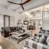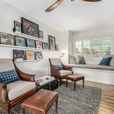 This home's thoughtfully designed floor plan features a main level primary bedroom with a full bathroom suite and a large walk-in closet. Upstairs are two large bedrooms with generous closets, plus a full bath with a separate toilet/shower room and double sinks. One of the bedrooms opens to a large private roof deck and quiet outdoor retreat. In addition, a large light-filled loft with a charming window seat is ideal as an office or relaxation space.