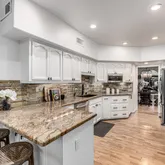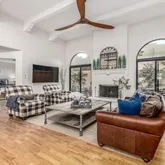 Vaulted and beamed ceilings combined with an abundance of contemporary and expansive windows create a bright, airy feel, complemented by a built-in bar and a cozy fireplace - perfect for entertaining. A delightful sun-filled kitchen nook and coffee bar offers a wonderful venue for planning an amazing Scottsdale day.