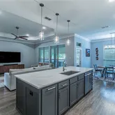 - Interior Features: BuiltInFeatures, CeilingFans, DoubleVanity, GardenTubRomanTub, HighCeilings, HomeOffice, OpenFloorplan, PullDownAtticStairs, SplitBedrooms, SeparateShower, WalkInClosets, CustomCabinets, GraniteCounters, KitchenIsland, KitchenFamilyRoomCombo, KitchenDiningCombo, Pantry