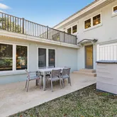 The lower level opens directly to a fenced-in sparkling SALTWATER POOL and a private outdoor courtyard, creating a true indoor-outdoor living experience. Southern-facing orientation enhances natural light and offers a feng shui–friendly design well suited for relaxed coastal living. The home is turn-key and sold fully furnished