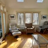 - Interior Features: Ins,OSh, Floor 1: Living room, dining room with fireplace, spacious kitchen, 2 bedrooms, 2 baths, a laundry room, sunroom and family room, Floor 2: Primary bedroom with walk-in closet, private bath and french door to a balcony.