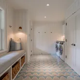 - Interior Features: A,AC,Disp,Ins,Irr,OSh, Floor 1: A gracious covered front porch welcomes one into the spacious foyer with the staircase serving as an architectural focal point; to the right is a powder room and to the left is a large mudroom with ample closets and built-ins for storage as well as the first of two laundry areas. Beyond is the kitchen appointed with top-of-the-line appliances, several workstations, two sinks and a walk-in pantry. The island provides seating for four guests and has refrigeration and freezer drawers for additional storage. A built-in banquet provides space for a casual dining option. Adjacent is the formal dining area with sliders leading to the yard. Passing by the gas fireplace with a stone surround, the large living room has ample space for seating and play. A built-in window seat with storage drawers below runs along the left-hand side of the space, and the TV wall is flanked by shelves with more storage space below. To the left is a bar with a stone backsplash, wine refrigerator and ice maker. More sliders ensure ease of transitioning from indoor to outdoor living spaces. A family room with grasscloth walls, TV and play nook is found at the front of the home and has a nearby full bathroom with a tile and glass shower., Floor 2: At the top of the stairs is the primary suite with a gas fireplace and stone surround, and doors welcoming one onto the deck to take in the surrounding greenspace views. The primary bathroom is spacious, including an oval-shaped soaking tub, vanity with two sinks and a separate glass and tile shower. The second guest suite has a walk-in closet and a private bathroom with a glass and tile shower. Passing by the second-floor laundry room, the third suite is a whimsical children's room with two sets of bunk beds with storage below, and a bathroom with a glass and tile tub/shower. The fourth suite on this level is spacious and private, with a bathroom that has a glass and tile shower.