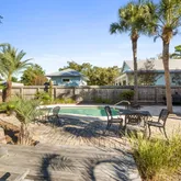 Expansive porches and a private resort-style pool create a serene backdrop for coastal living. The large lot not only provides a sense of privacy but also incredible flexibility, with room to expand or even add a detached guest cottage. A golf cart is included with the sale, offering effortless access to the sugar-white sands, vibrant dining, and boutique shopping just minutes away. Inside, the open-concept floor plan seamlessly connects the kitchen, dining, and living spacesideal for entertaining or relaxed family gatherings. The main level offers a generously sized suite with direct pool access, while the upper floor features two additional spacious bedrooms with en-suite baths and private porch access.