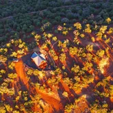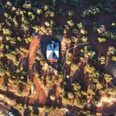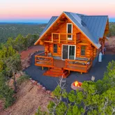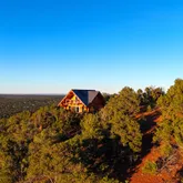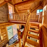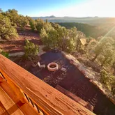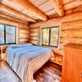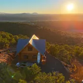 doors lead onto a westerly facing, elevated back deck, where you can survey the valley below, revel in the quiet, and enjoy a spectacular sunset. Back inside, go up the hand-hewn staircase to find a spacious, open-loft bedroom with a hand-washed stained focal wall and buttery-soft, spruce tongue-and-groove flooring. Large enough for a queen bed and queen size futon, this room can be used as the main bedroom, a guest room for 4, or even a spacious library, craftroom, or office. However it is used, be prepared to be distracted: Another glass door leads to a balcony with even more breathtaking, panoramic views. This stunning retreat is off grid, but it is not lacking any of the comforts of home. Rooftop solar electric panels with battery storage provide all the power needed to run the entire house, including lighting, plenty of outlets, and a stainless steel refrigerator. Dual propane tanks fuel the stainless range and high-efficiency Rinnai propane heater. And a 1500-gallon water storage tank- with local delivery service- holds all water needed for clean, comfortable living. Whether you are looking for a full-time retreat or occasional get-away, for seclusion or proximity to adventures and exploring, The Ridge, at an elevation of 7200' and minutes from abundant trails throughout the largest ponderosa pine forest in the country, will not disappoint.