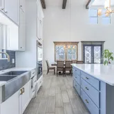 - Room Features: Breakfast Bar, Built-in Cabinets, Dual Sinks, Eat-in Kitchen, Farm Sink, Kitchen Island, Natural Stone/Granite Type, Walk-in Pantry