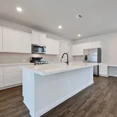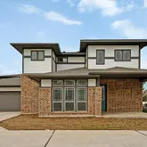 -Contemporary exterior with a covered front porch and attached two-car garage. -Spacious open floor plan; Sliding doors open to the covered back patio. -Modern island kitchen with a breakfast bar, tile backsplash, pantry, and ample cabinet space. -Primary suite with a private bathroom featuring dual vanities, a separate water closet, and a generous walk-in closet; Well-sized secondary bedrooms. -Linen closet...Modern design meets suburban comfort in this beautiful home in Easton Park. Home Highlights: