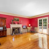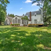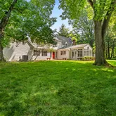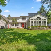 Inside, the foyer opens to a spacious formal living room with a fireplace and French doors leading to the private backyard. The kitchen features an island, double oven, and large vaulted eat-in breakfast room with its own cozy fireplace. From there, step into the sun-drenched sunroom, showcasing cathedral ceilings, floor-to-ceiling windows, and access to the yard. The elegant dining room offers ample space for hosting, while a large 20’ x 17’ family room provides flexibility—perfect as a gathering space or potential main-level primary suite for one-level living.