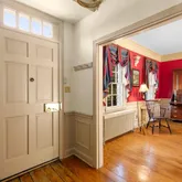 Inside, the foyer opens to a spacious formal living room with