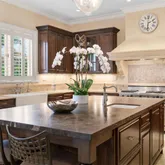 cabinetry, premium appliances and a gas range, built-in coffee-espresso machine, and water filtration system. Outdoor spaces include covered terraces, a fully equipped summer kitchen, heated...This chateau-inspired 9,289 SF, 7-BD, 8-BA gated residence boasts a meticulously designed layout on an