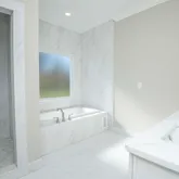 Spa-like bathroom featuring a tiled walk-in shower. Relaxing jetted soaking tub. Oversized walk-in closet. Second and third bedrooms are on the first floor as well. Laundry room.
