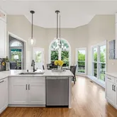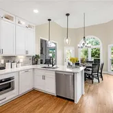 - Kitchen Features: Breakfast Bar, Breakfast Room, Cabinets White, Eat-in Kitchen, Kitchen Island, Pantry, Stone Counters, View to Family Room