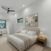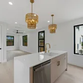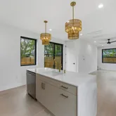 - Interior Features: Ceiling Fan(s), Eat In Kitchen, High Ceilings, Interior Steps, Kitchen Island, Open Floorplan, Quartz Counters, Recessed Lighting