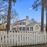 large enough for a tennis court or pool. Finally, a white picket fence plus a board-on-board wooden fence secure the entire