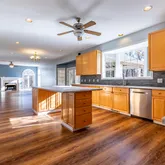 - Room Description: gathering area open to kitchen has fireplace