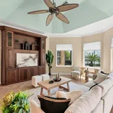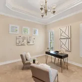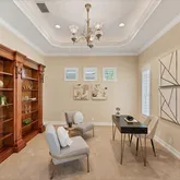 - Interior Features: Ceiling Fan(s), Crown Molding, Eating Space In Kitchen, High Ceilings, Kitchen/Family Room Combo, Primary Bedroom Main Floor, Solid Wood Cabinets, Stone Counters, Thermostat, Tray Ceiling(s), Walk-In Closet(s), Window Treatments