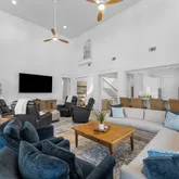Step into a welcoming front entrance with travertine flooring & soaring 18-foot ceilings with clerestory windows create a dramatic & light-filled living space. A wall of glass doors frames...Welcome to this exceptional two-story villa in the exclusive community of Fountains at Sandestin—where serene lakefront living meets refined luxury. This recently renovated Jewel is perfectly positioned to capture sweeping views of the lake & Golf Course, offering a lifestyle of comfort, elegance, & tranquility.