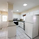- Kitchen equipped with range/oven, refrigerator, under-counter low-power microwave, and dishwasher