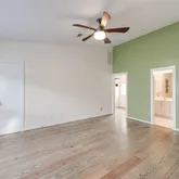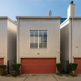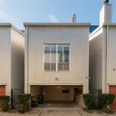 natural light & the perfect Midtown location. On the first floor, you'll find a bedroom/office outfitted w/Elfa storage, concrete floors, and direct access to the easy-care yard & covered patio, and another large bedroom, full bath and laundry. Above, soaring ceilings with fans and a skylight top the spacious open-plan living/dining area with beautiful wood floors. Chefs will love the open kitchen's ample cabinet space and two pantries w/Elfa storage, and the adjacent balcony is the perfect spot for grilling. The third floor delivers an expansive master suite w/ hardwood floors, a den, a massive walk-in closet, and an en-suite bath and double vanity. An attached two-car garage, smart home controls for lights, doors and fans plus wiring for surround sound add convenience to this hip Midtown home, close to Downtown, Buffalo Bayou Park/Trails, and easy access to Med Center.