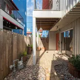 natural light & the perfect Midtown location. On the first floor, you'll find a bedroom/office outfitted w/Elfa storage, concrete floors, and direct access to the easy-care yard & covered patio, and another large bedroom, full bath and laundry. Above, soaring ceilings with fans and a skylight top the spacious open-plan living/dining area with beautiful wood floors. Chefs will love the open kitchen's...Enjoy the best of Houston living in this fantastic contemporary 3BD/2BA + additional office w/stunning