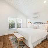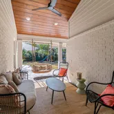 - General Property Information: Public Remarks: Bike to the beach or park.This well maintained beautiful light and bright home is located at the end of a cul-de-sac on one of the largest lots east of Penman in the heart of Neptune Beach. Everything was taken down to the studs in 2020 and rebuilt, including roof(2020), windows, doors, plumbing, electrical, insulation, water heater, and HVAC (2019).White oak flooring flows throughout the open floor plan with two living areas—one with a fireplace and the other featuring a soaring 14' vaulted ceiling. The designer kitchen boasts soft-close cabinetry with dovetail joints, a 10' island, stainless steel appliances, and high-end countertops.The split floor plan includes two primary suites with walk-in closets and adjustable LED lighting.The main primary features a spa-like super shower with herringbone tile. Included in this home, are an abundance of storage and oversized closets.