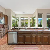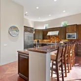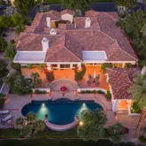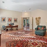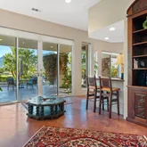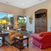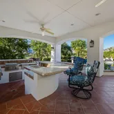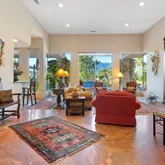 The primary suite is expansive and includes a versatile bonus room ideal for a private office, gym, or retreat. A large additional bonus room provides even more flexible living space, perfect for media, hobbies, or hosting guests. The craftsmanship throughout the home is truly distinctive, featuring high-end finishes and materials including travetine stone tile imported from Europe that add character, quality, and timeless appeal. Situated on a generously sized lot, the outdoor space is a true entertainer's haven. The backyard showcases a covered outdoor kitchen with seating and a built-in BBQ, creating the perfect setting for gatherings while enjoying panoramic views of the golf course and surrounding mountains. Offered furnished per inventory, this home presents a rare opportunity to own a premier view property in PGA West, combining location, design, and lifestyle in one exceptional offering.