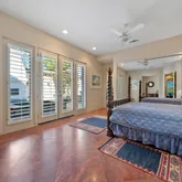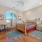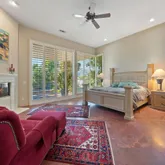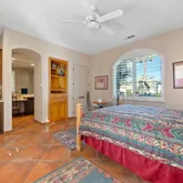 The primary suite is expansive and includes...Located in one of the most coveted settings within PGA West, this exceptional residence is perfectly positioned above the 3rd green of the private Tom Weiskopf Course, capturing breathtaking south-facing mountain and golf course views that define desert luxury living. The highly sought-after Masters 4 floor plan offers three bedrooms plus a private guest casita and four and a half bathrooms, thoughtfully designed for both everyday comfort and entertaining.
