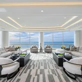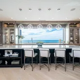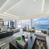 a daily spectacle of stunning sunrises and sunsets. Encircling the penthouse is an expansive 4,843 square feet of terrace space designed to maximize outdoor living. This includes a Gulf-view kitchen and dining area, as well as multiple seating spaces perfect for hosting gatherings or