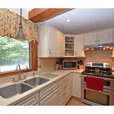 • Kitchen Features: Beamed Ceilings,Flooring - Stone/Ceramic Tile,Window(s) - Bay/Bow/Box,Countertops - Upgraded,Kitchen Island,Cabinets - Upgraded,Recessed Lighting,Stainless Steel Appliances