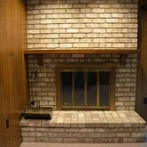 All brick, wood burning fireplace