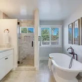 - Bathroom: Double Sinks, Full on Ground Floor, Half on Ground Floor, Marble, Primary - Oversized Tub, Tile, Updated Bath