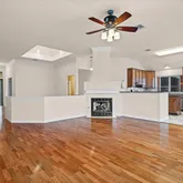 - Room Description: Spacious living room with great light and beautiful crown molding. Fireplace with gas logs is on the diagonal which offers many options for furniture placement. Main wall just repainted as well as all baseboards. Open to kitchen and formal dining area. Overlooks backyard.