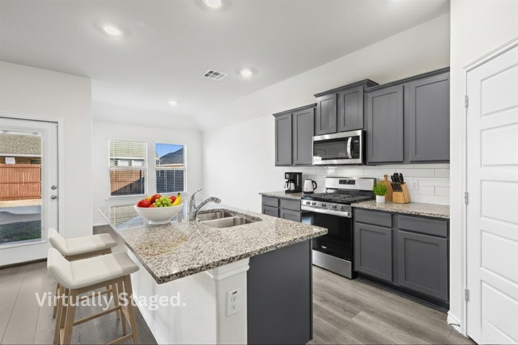 - Appliances: Dishwasher, Disposal, Dryer, Gas Oven, Gas Range, Microwave, Refrigerator, Tankless Water Heater, Washer