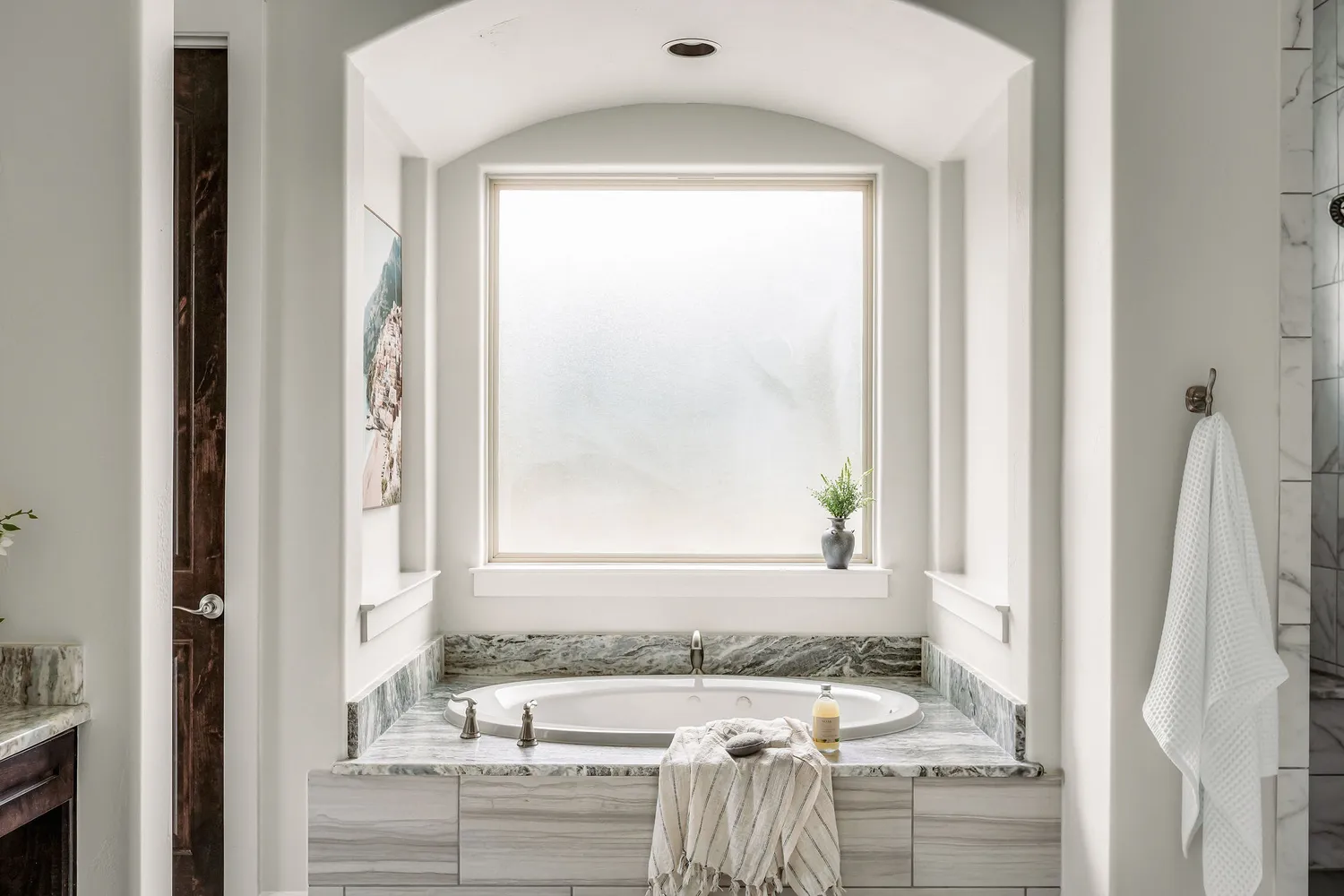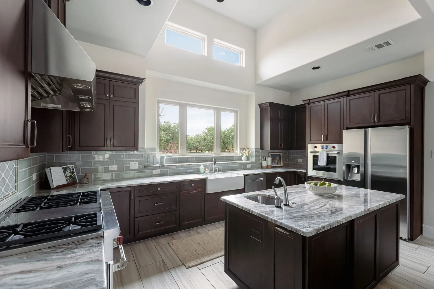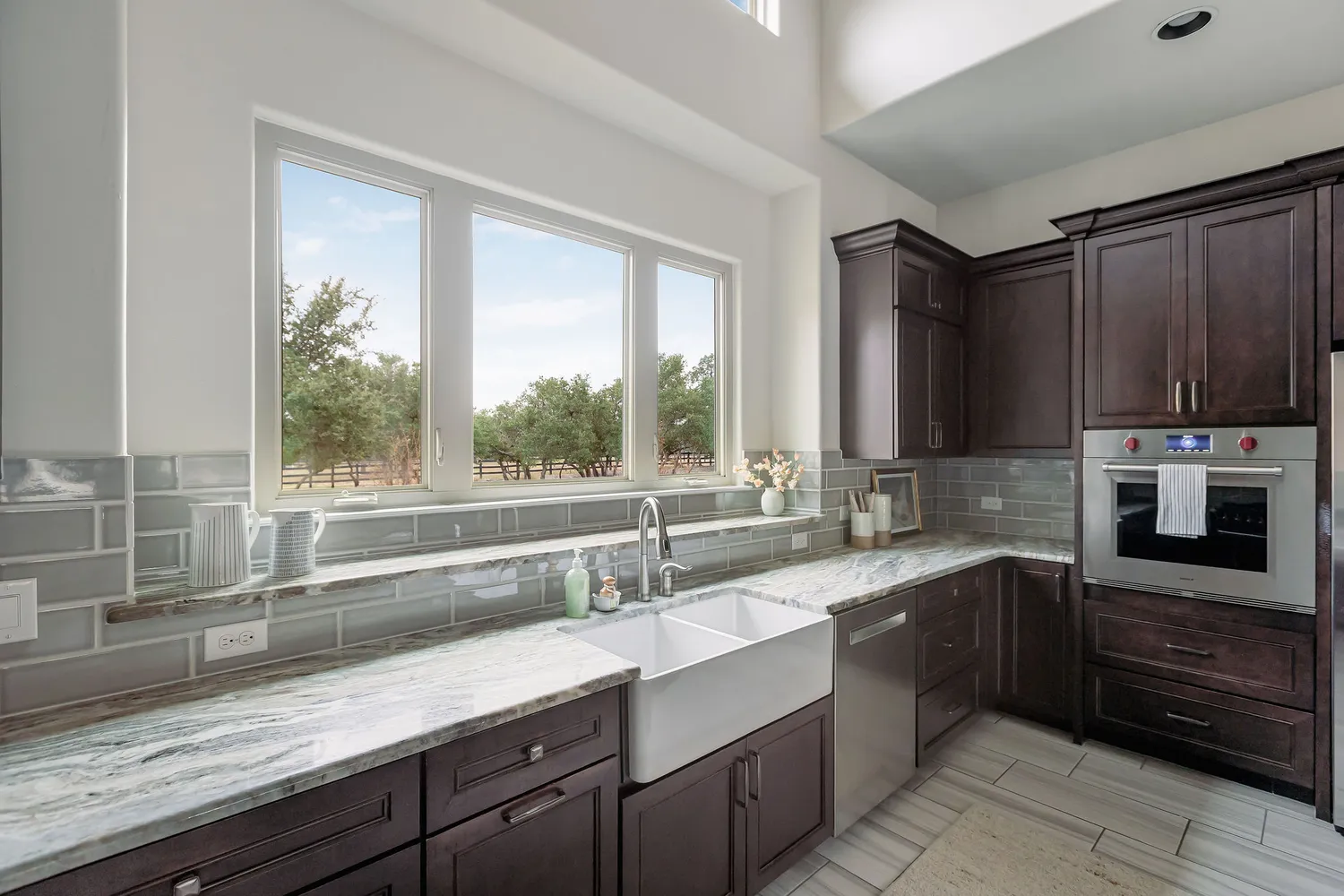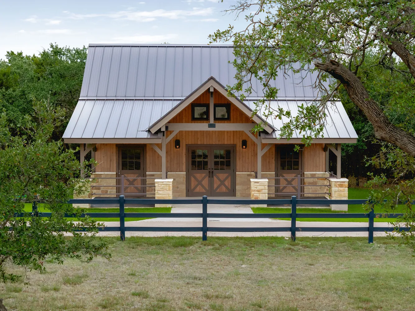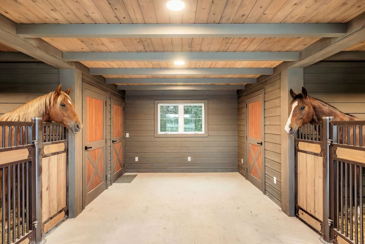 Above the barn, the luxuriously finished guest quarters feel more like a boutique apartment than a traditional guest apartment. Complete with its own full kitchen, living area, bedroom, bath, laundry area and elevated finishes throughout, it is perfect for extended family, long-term guests, a caretaker, or multi-use living such as an office, studio, or retreat.