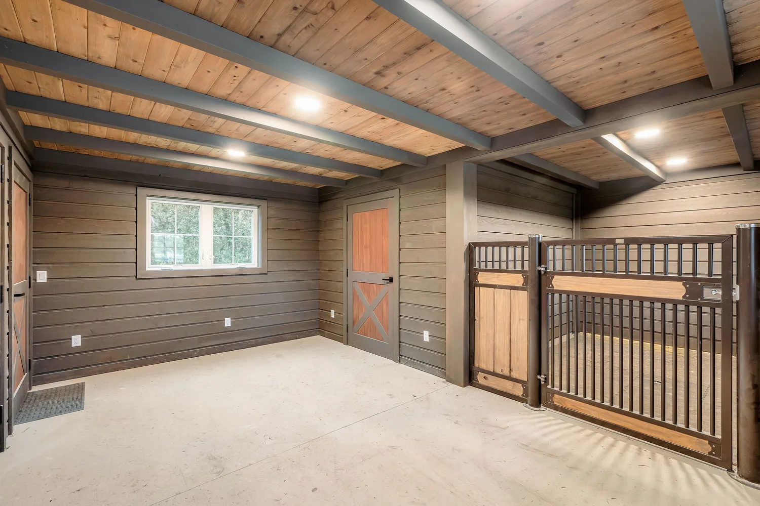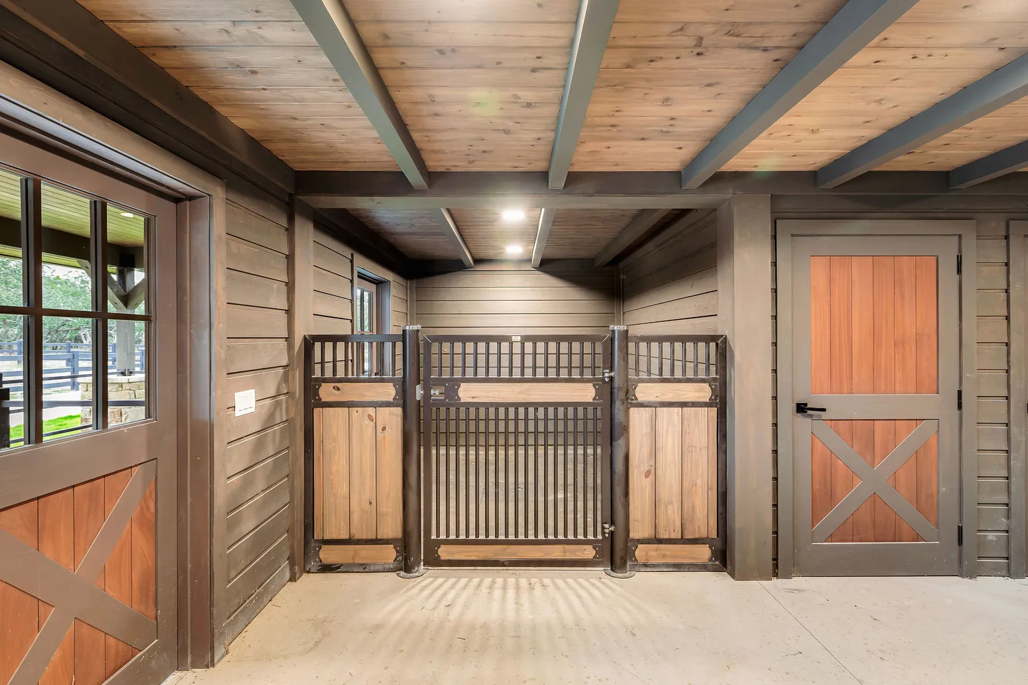 For equestrian enthusiasts, hobby ranchers, or those wanting space to roam, the property offers exceptional functionality. The acreage is fully fenced with cross fencing, providing flexibility for livestock or property organization. A professionally constructed horse barn serves as the centerpiece of the ranch amenities, offering multiple pristine stalls, a tack room and ample storage.