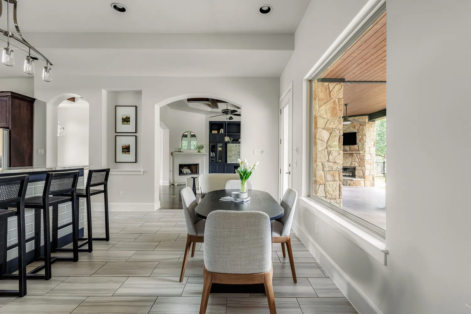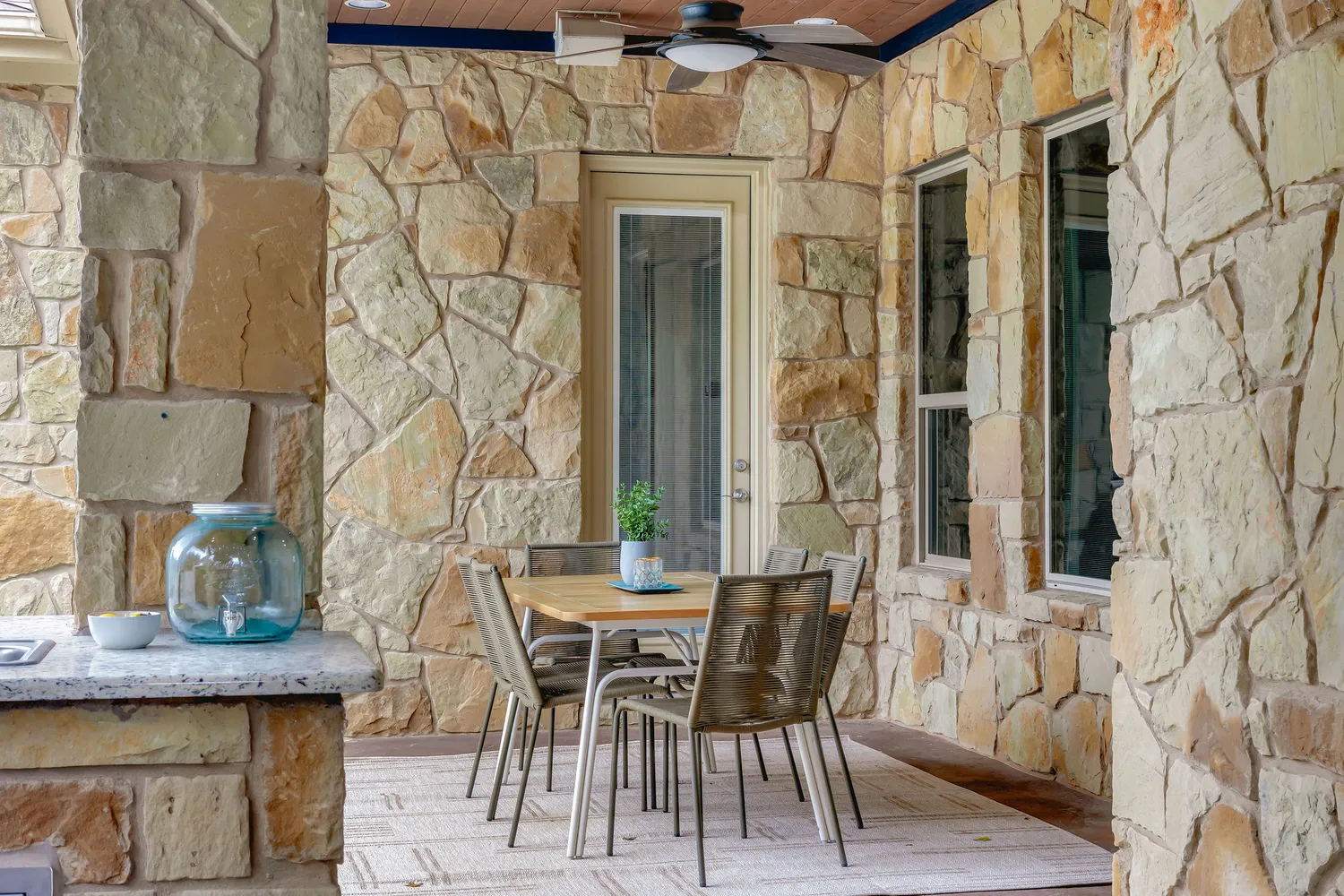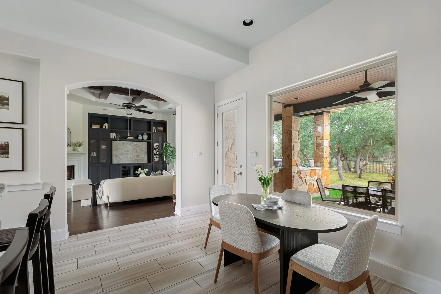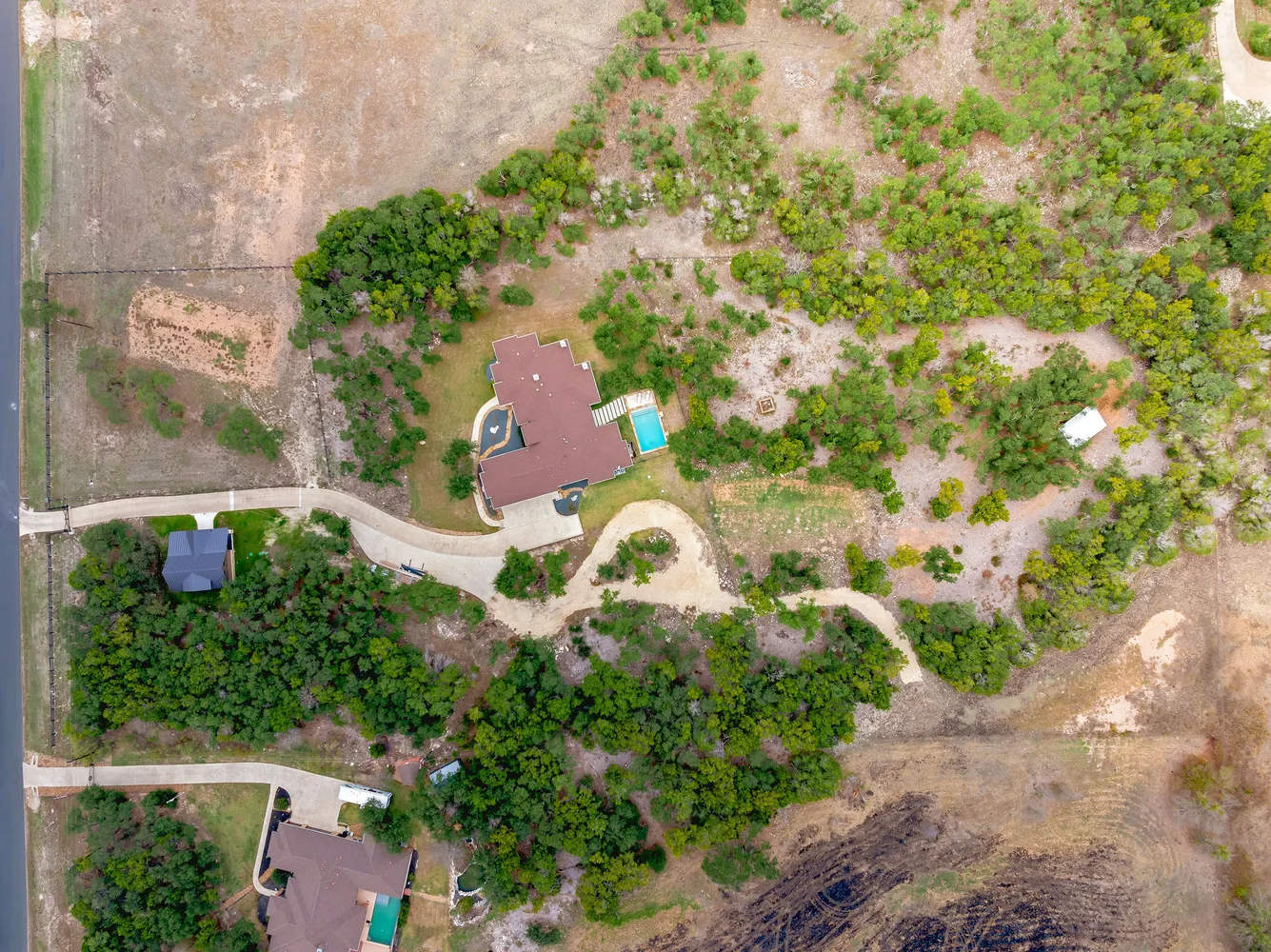 Step outside and the estate becomes a true sanctuary. A resort-style pool, built by Denali Pools and designed for year-round enjoyment with the ability to be heated, anchors the backyard. Expansive patios, shaded lounging areas, and an outdoor kitchen create a natural gathering space for long summer days, evening dinners under the stars, or quiet mornings overlooking the land. Mature trees frame the property, enhancing the unmatched privacy and Hill Country charm.