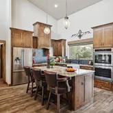 - Room Features: Built-in Cabinets, Farm Sink, Kitchen Island, Natural Stone/Granite Type, Pantry, Walk-in Pantry, Water Line to Refrigerator