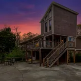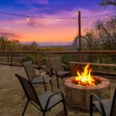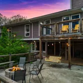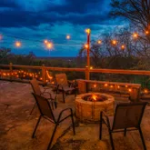• Extensive outdoor seating with multiple firepits and string lighting