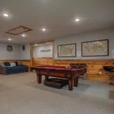 • Expansive game room + wet bar with bar sink and mini fridge