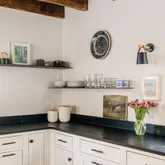 A stone single with a distinctive mansard roof, the home has been thoughtfully reworked with a clear design sensibility and consistent material choices throughout. Exposed...Perfectly positioned between Germantown Avenue and Pastorius Park — just one block in either direction — this restored Chestnut Hill home offers walkability to shops and restaurants, everyday access to green space, easy reach of the Wissahickon trails, and the added flexibility of a detached studio tucked just beyond the courtyard.