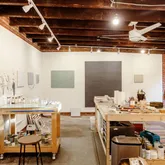 Just beyond the courtyard sits a former three-car garage, now an approximately 500-square-foot artist's studio with additional storage. Filled with natural light and equipped with its own mini-split heating and cooling system, it offers a rare layer of flexibility — studio, office, workshop, fitness space, guest overflow.