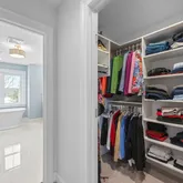Upstairs, the private primary suite sits on one side of the home and features a spa-like bath with an oversized double vanity, soaking tub, glass-enclosed shower, and two spacious walk-in closets. The opposite side of the second floor boasts a bedroom with ensuite bath as well as two additional bedrooms that share a well-designed Jack-and-Jill bathroom — each with its own private sink area. The second floor is also home to a large laundry room.