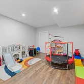 The finished basement offers incredibly flexibility with a separate bedroom and full bath (ideal for guests, an au pair, or extended stays), custom bar, lounge space, playroom area, and unfinished storage.