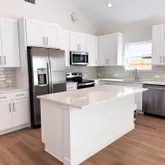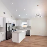 - Interior Features: Ceiling Fan(s), Chandelier, Double Vanity, High Ceilings, Kitchen Island, Main Level Master, No Interior Steps, Open Floorplan, Quartz Counters, Recessed Lighting, Smart Thermostat, Vaulted Ceilings, Walk In Closets