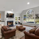 Step through the front door into a grand foyer, where a custom staircase and overhead catwalk create an unforgettable first impression. To the left, there is a wonderfully cozy formal living room warmed by a gas fireplace, and to the right, a dramatic dining room with a bay window perfect for gatherings. At the heart of the home lies a chef’s dream kitchen featuring abundant custom cabinetry, a large two-tier island, two dishwashers, a desk nook, and a butler’s pantry. Versatile living spaces invite you to unwind in the great room/family room or bask in sunlight in the morning room/4 seasons sunroom—both offering the property’s best views, gazing out over the private backyard. A secluded office/library and perfectly placed laundry/mud room round out the first floor.
