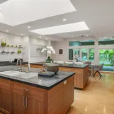 - Kitchen Features: Stone Counters, Skylight(s), Open to Family Room, Island, Gourmet Kitchen