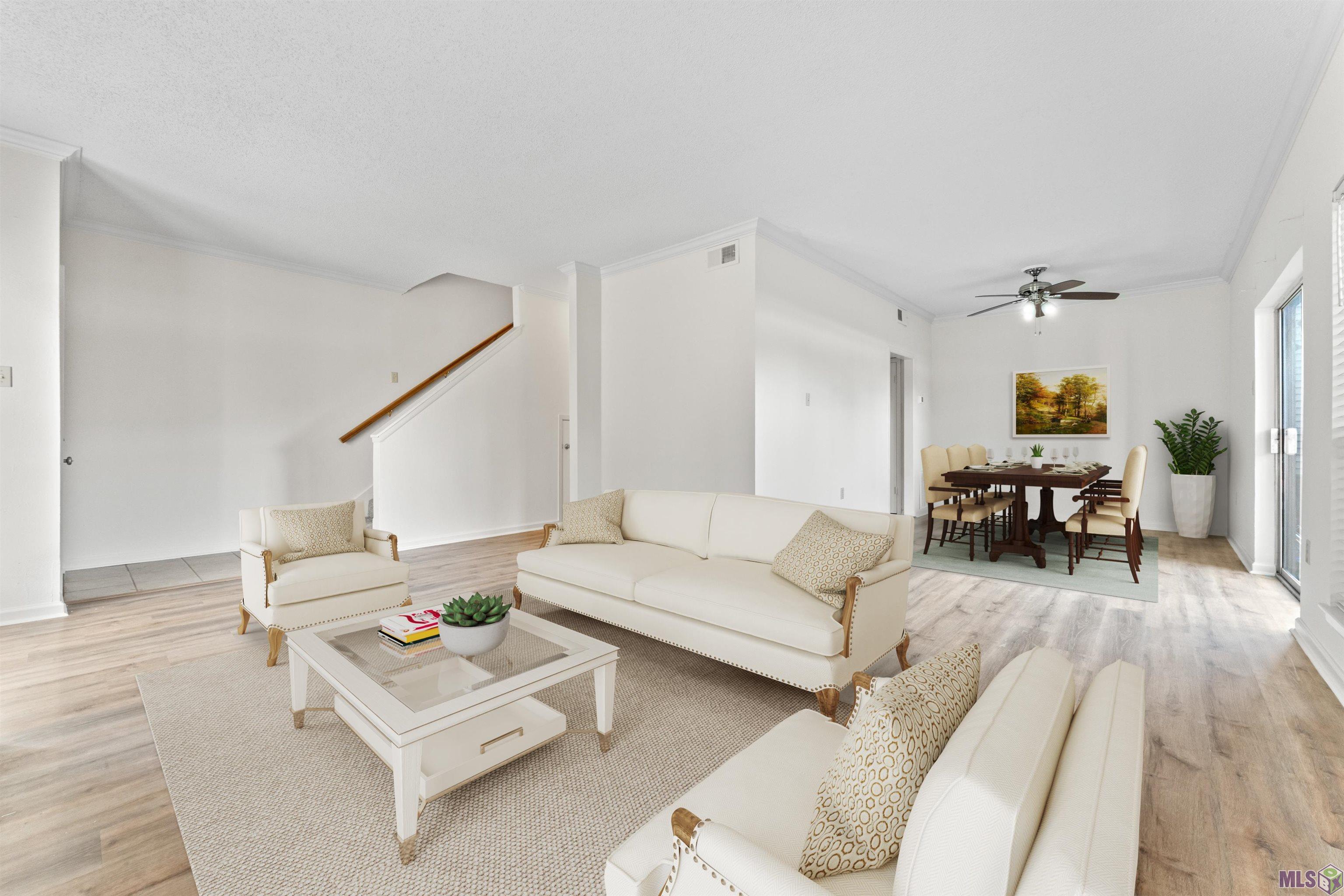 - Interior Features: Ceiling 9'+, Ceiling Fan(s), Crown Molding