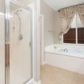 - Room Bathroom Features: Shower in Tub, Exhaust fan(s), Walk-in shower, Separate tub and shower, Double sinks in bath(s), Bathtub, Double Sinks in Primary Bath, Shower